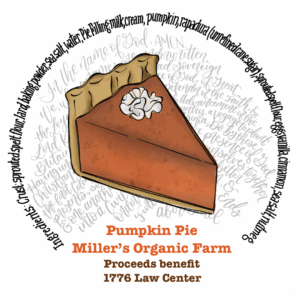 Your purchase of our *Preserve America – Pumpkin Pie* will help fund the legal cost of the battle to save our farm, and will help keep the farm from going under. When you register as a new member your payment contributes $129.00 supporting the 1776 Law Center’s Preserve America fundraiser plus a $1 lifetime farm membership fee ($130.00 total). You are supporting the Farm’s legal fight for food freedom. By making this payment you will receive a 6″ freshly baked *Pumpkin Pie* which Amos will ship to you with heartfelt appreciation.
